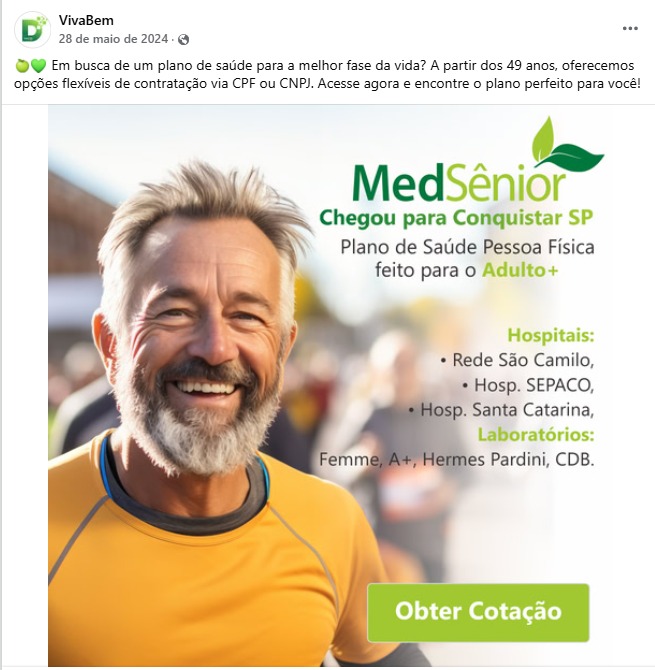 🩺👩🏻⚕️ A MEDSÊNIOR chegou para trazer uma nova experiência em Planos de Saúde para pessoas acima dos 49 anos. Com um excelente atendimento e Ampla Rede de hospitais, clínicas e laboratórios, você ainda conta com a Carência Promocional