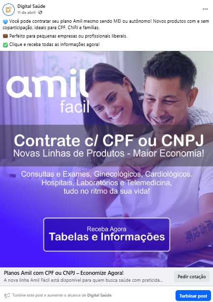 💙🟣 Mais economia, mais saúde no seu dia a dia! Contrate agora seu plano Amil Fácil com CPF ou CNPJ. 🩺 Consultas, exames, ginecologia, cardiologia e muito mais.