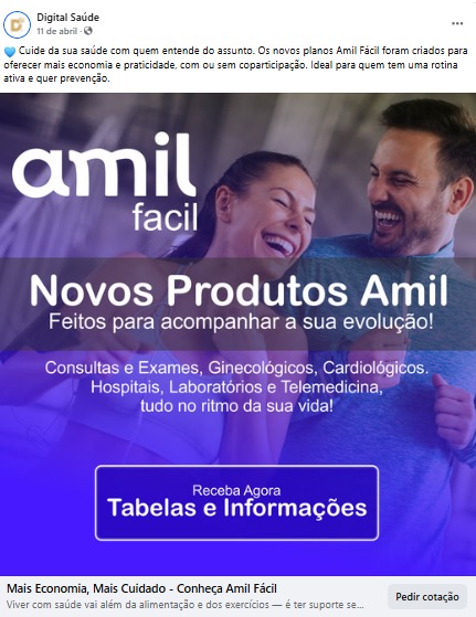 💙 Pra quem se cuida todos os dias. Conheça os planos Amil Fácil com condições especiais e ampla rede de atendimento.