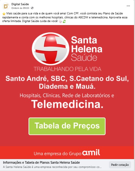 🍃 Está na hora de investir na sua saúde e na da sua família! Contrate seu Plano de Saúde com CPF e tenha acesso a hospitais e clínicas renomadas no ABCDM, além de telemedicina. Não perca tempo! Consulte a Digital Saúde e proteja quem você ama. ⭐🩺