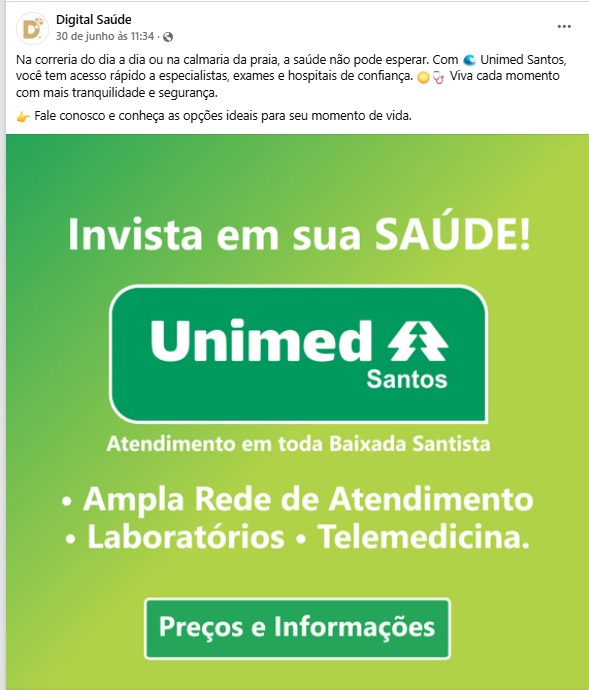 Na correria do dia a dia ou na calmaria da praia, a saúde não pode esperar. Com 🌊 Unimed Santos, você tem acesso rápido a especialistas, exames e hospitais de confiança. ☀️🩺 Viva cada momento com mais tranquilidade e segurança.