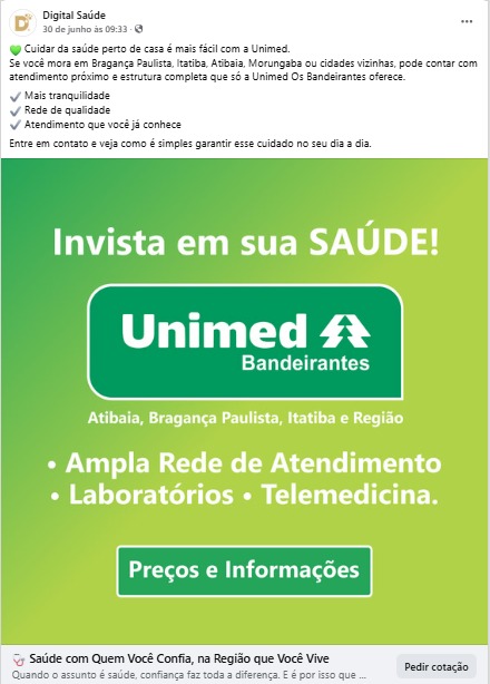 💚 Cuidar da saúde perto de casa é mais fácil com a Unimed.