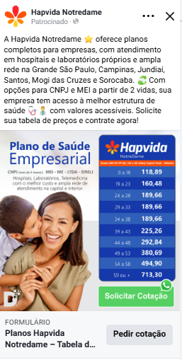Tenha acesso a uma rede completa de hospitais, laboratórios e atendimento especializado com a Hapvida Notredame ⭐. Planos empresariais com ampla cobertura em São Paulo e interior, incluindo Campinas, Jundiaí, Santos, Mogi das Cruzes e Sorocaba. 🍃 Contrate com seu CNPJ ou MEI e garanta saúde de qualidade 🩺👨‍⚕️ para sua equipe. Consulte a tabela de preços agora mesmo!