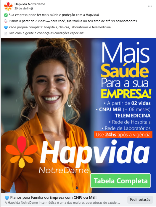 🩺 Seja para sua família ou empresa, a Hapvida oferece planos completos com contratação via CNPJ ou MEI.