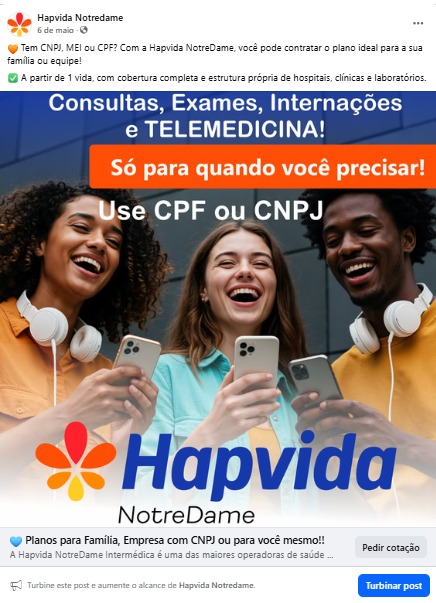 🧡 Tem CNPJ, MEI ou CPF? Com a Hapvida NotreDame, você pode contratar o plano ideal para a sua família ou equipe!